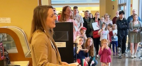 Chelsea Hardacre, Chief Nursing Officer for SSM Health Monroe Hospital and SSM Health St. Mary’s Hospital – Janesville, provided remarks and welcomed the crowd. She shared, “This is such a wonderful partnership. Art can assist in the healing process and provide a level of comfort to our patients. We’re so pleased to be able to welcome this event back to the hospital.”