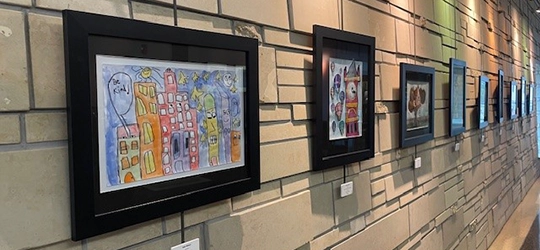 Families can find a list of student names and artwork locations within the hospital by inquiring at the Greeter Desk, contacting their student’s art teacher, or contacting the Monroe Arts Center.