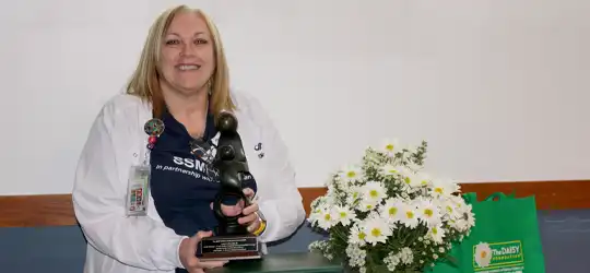 Locally, the DAISY Award is sponsored by SSM Health St. Mary’s Hospital Foundation. The not-for-profit DAISY Foundation was established by family members in memory of J. Patrick Barnes. Patrick died at the age of 33; the care Patrick received from nurses while he was ill inspired this unique means of thanking nurses for making a profound difference in the lives of their patients and patient families. DAISY stands for diseases attacking the immune system. Learn more about the DAISY Award.