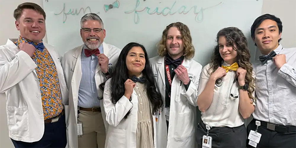 At our hospital, we are fortunate to have many opportunities to learn inpatient procedures like paracentesis, thoracentesis, and central line insertion. In fact, our residents have gotten so proficient at central line insertion that they have been given the opportunity to staff the hospital central line team. Our residents also participate in Rapid Responses, the Code Team, and Stroke Codes at our hospital. In 2024, the hospital implemented a program in which the Family Medicine inpatients are preferentially rounded to the 10th floor, which makes bedside rounding easier since our patients are clustered together. Every weekday, upper-level residents attend “Multi-Disciplinary Rounds” on the 10th floor with a case manager, pharmacist, and the bedside nurse which helps residents learn how to care for patients in a team-based setting.
